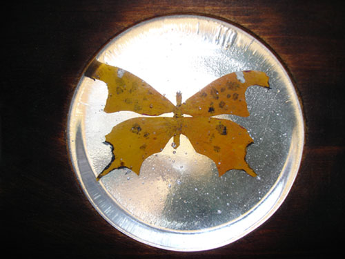 Hot cast glass with copper inclusion